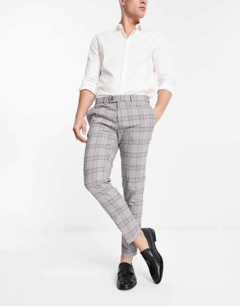 Mens Checked Trousers Grey Skinny Fit Boohooman